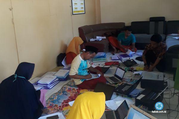 Kepala SMP ULUL ALBAB bersama Tim 8 Standard SMP Ulul Albab Bpk. Abdullah (putih biru), Bpk. Ismail (cokelat), Bpk. Holili (biru), Ibu Faizah (jilbab orange), Ibu anita (jilbab kuning), dan Ibu Sumiyati (jilbab biru) melakukan kerja bareng pra Akreditasi bulan ini. sebagian anggota (Bpk. Mahmud, Ibu